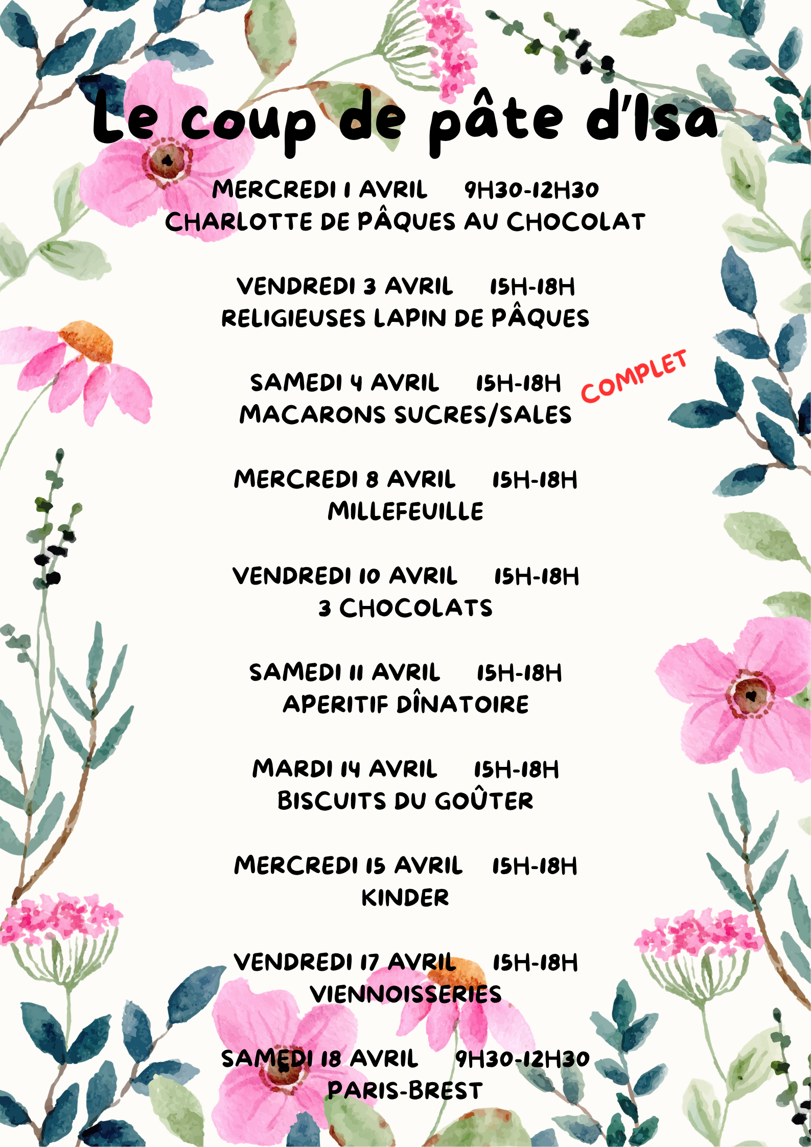 LE COUP DE PÂTE D’ISA : ateliers de pâtisserie